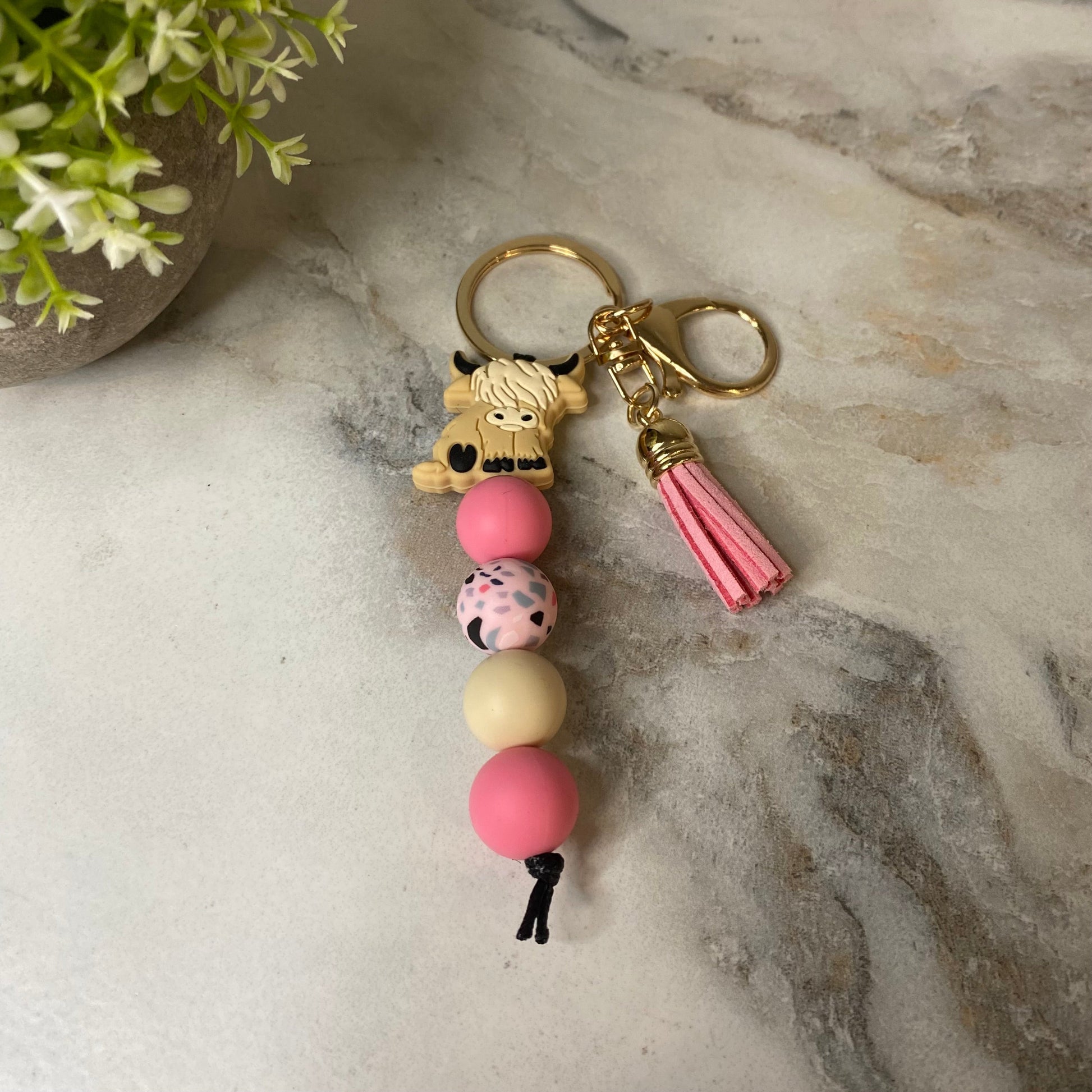 Keychain - Silicone Bead - Highland Cow - Pink