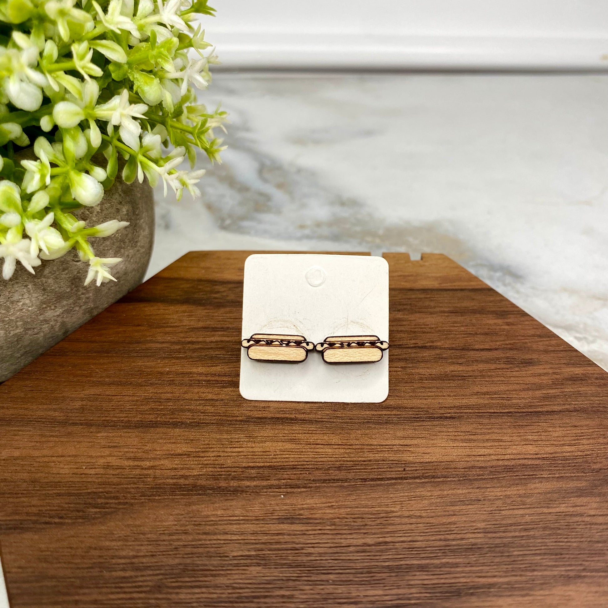 Wooden Stud Earrings - Hotdog